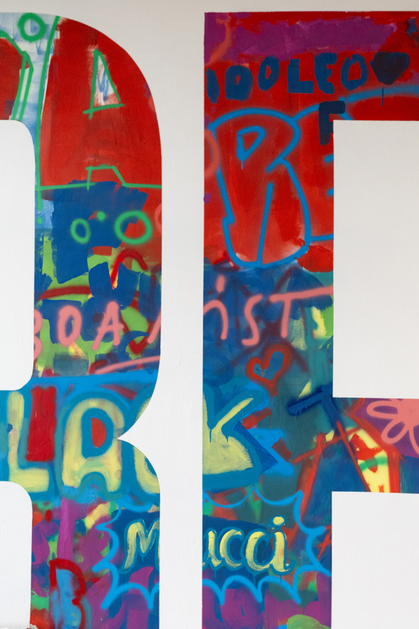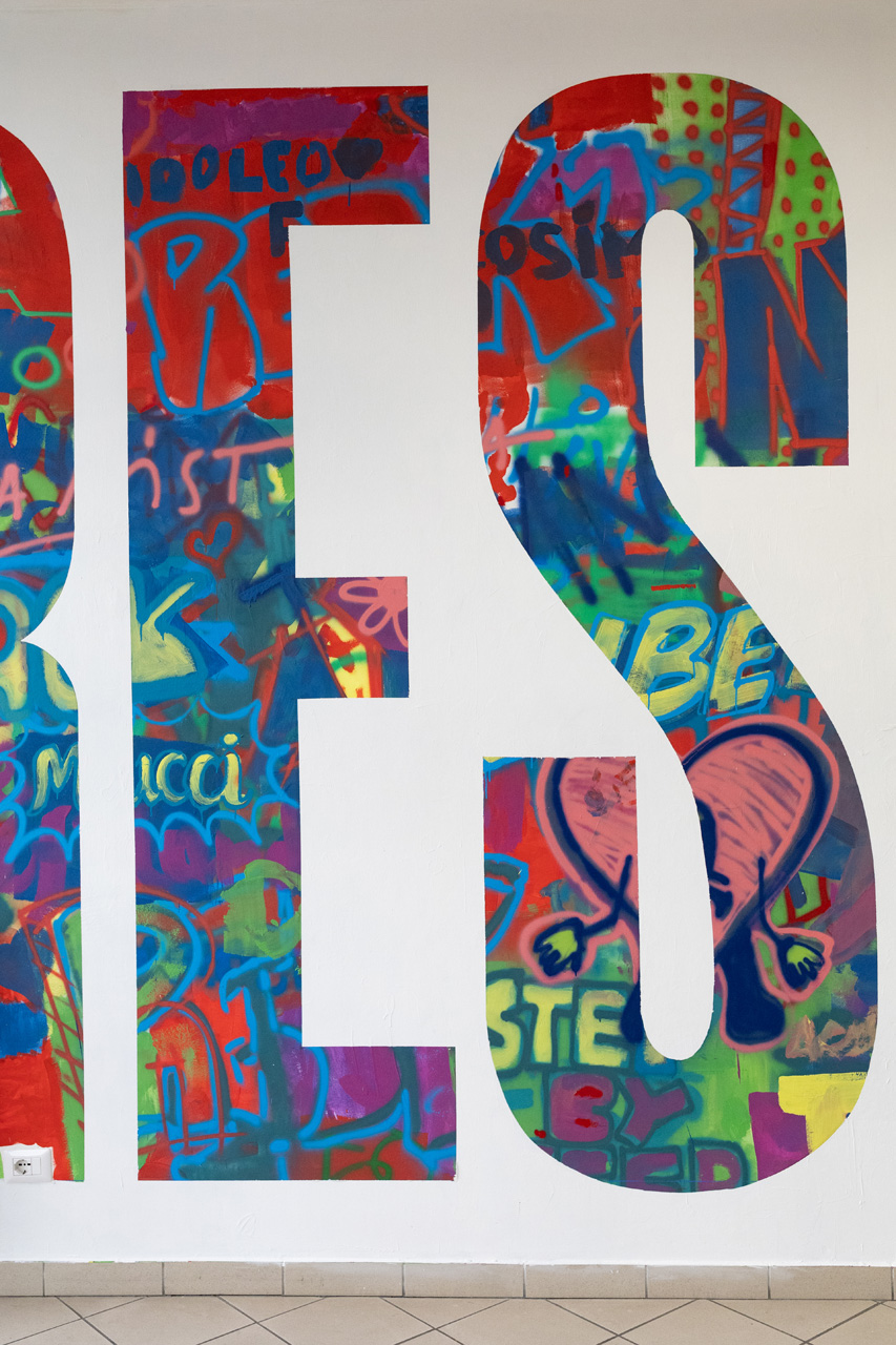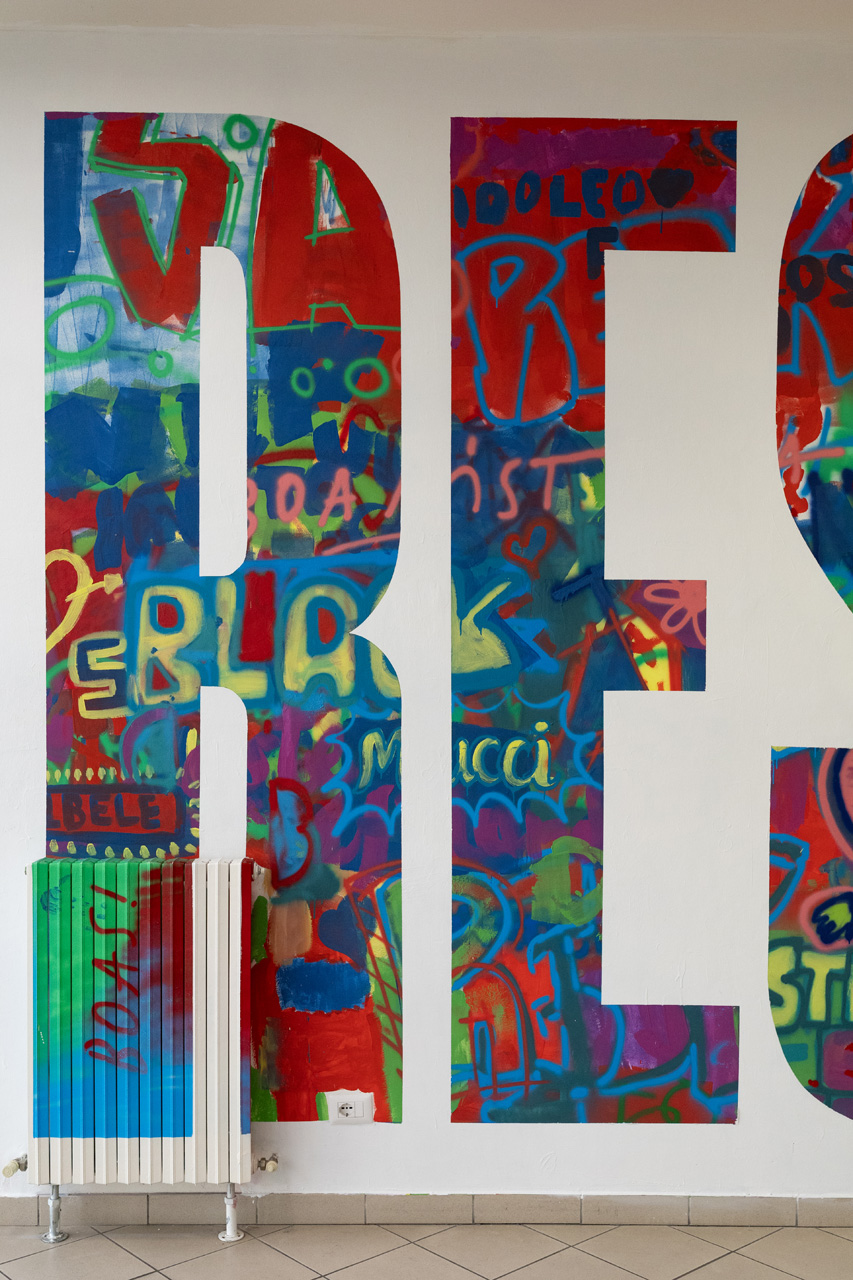 L’opera murale, rappresentata in una parete centrale, ha preso forma attraverso un lavoro di ricerca artistica basato sul concetto di simbiosi e coesistenza di elementi pittorici diversi, realizzati dai Boa Mistura con i giovani della comunità scolastica.