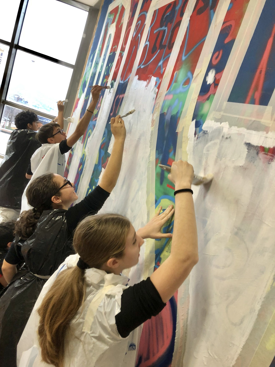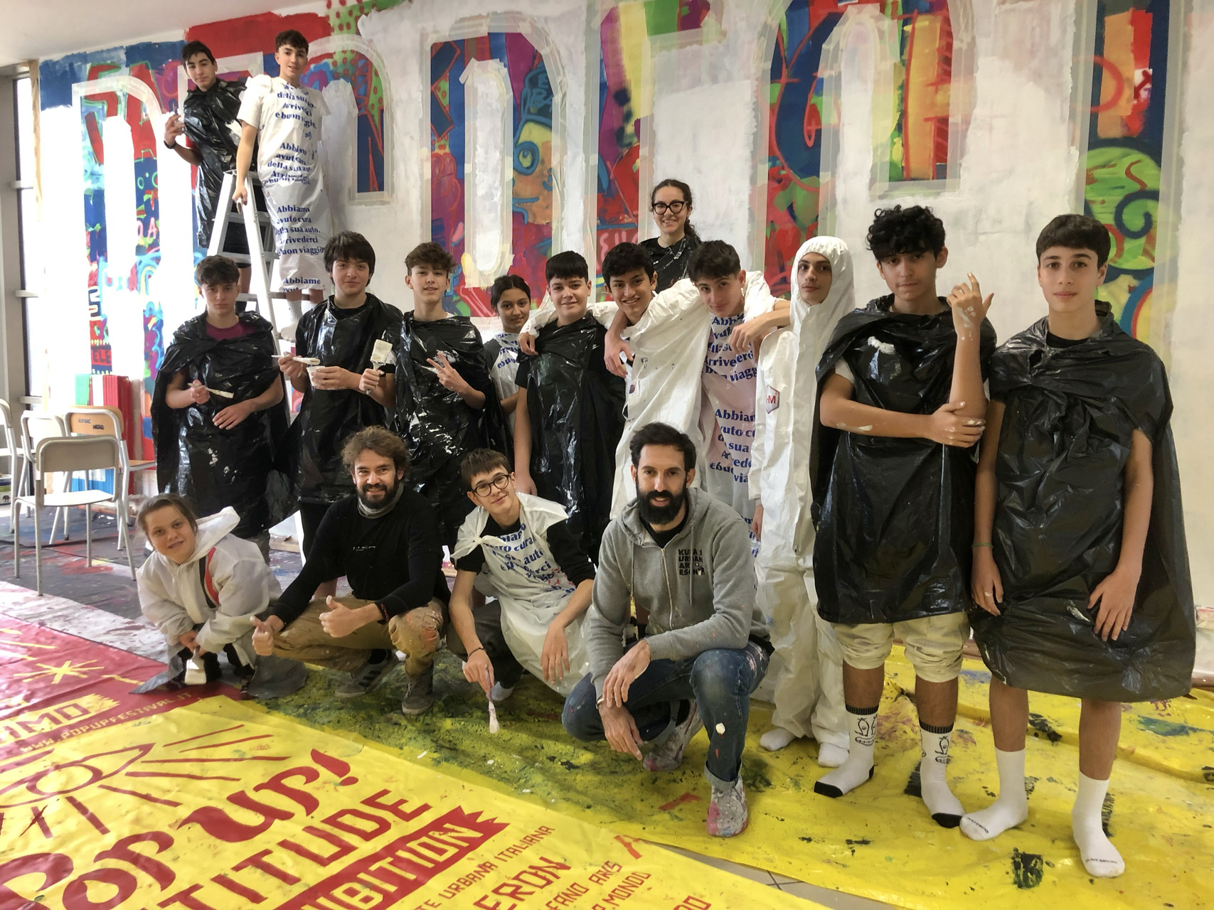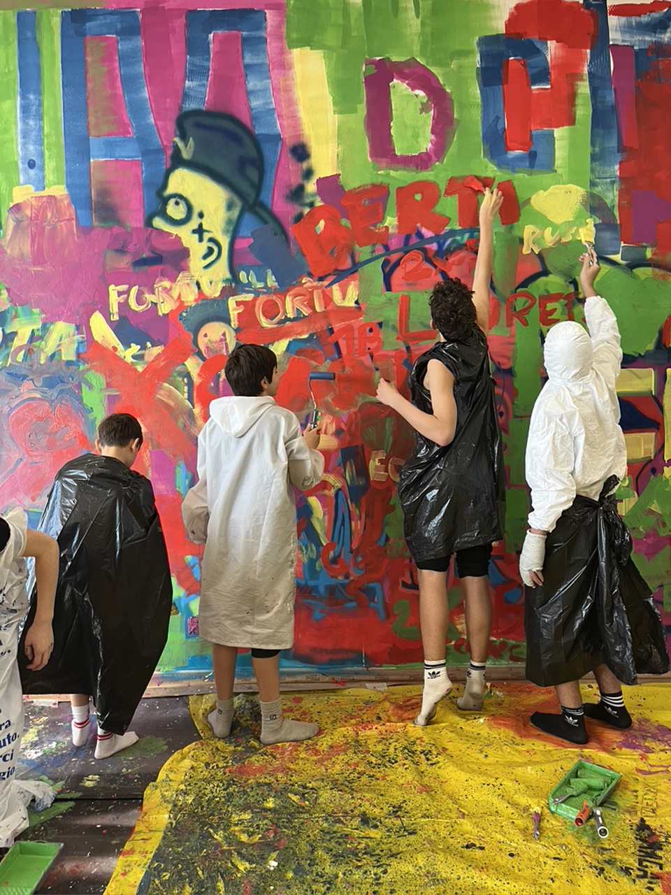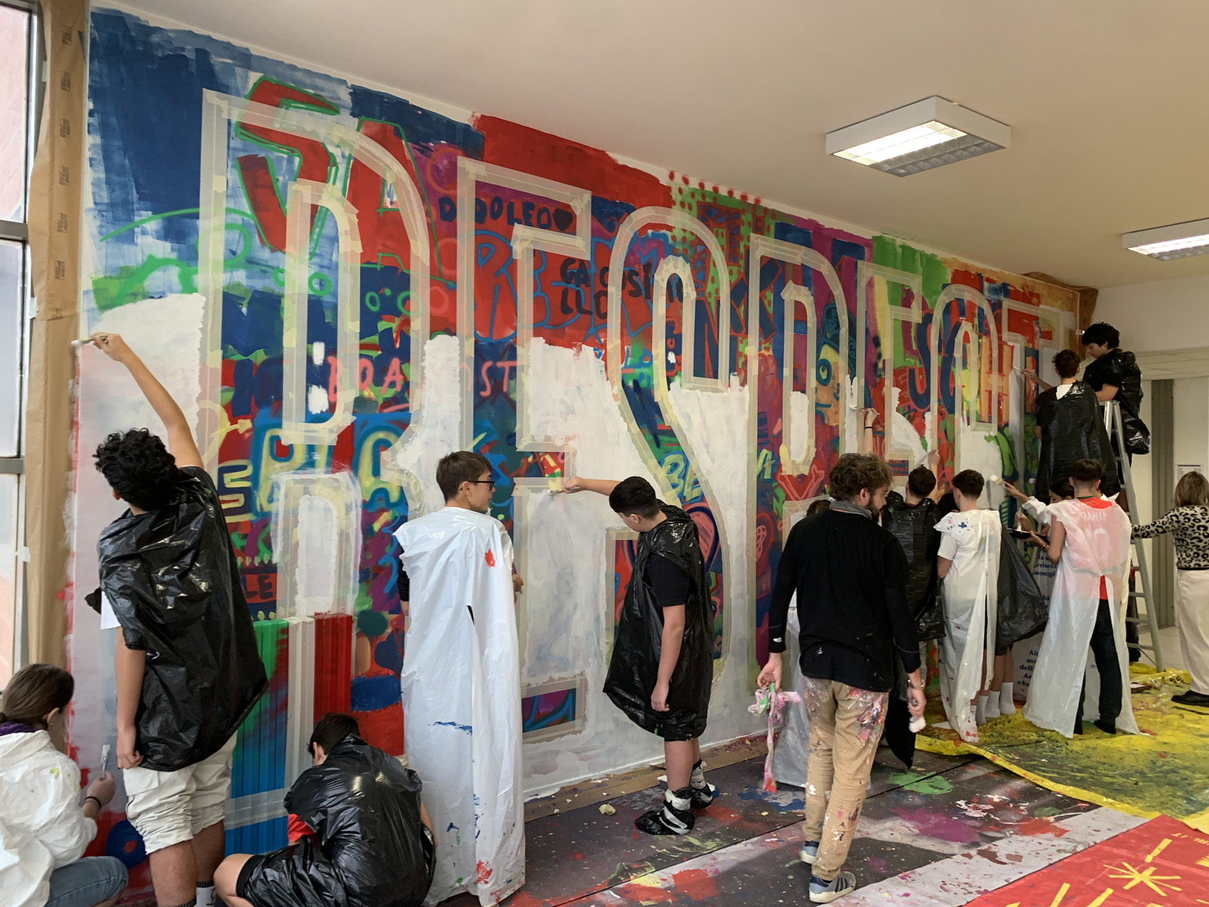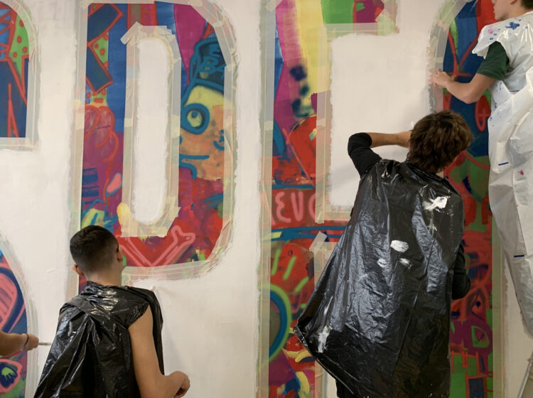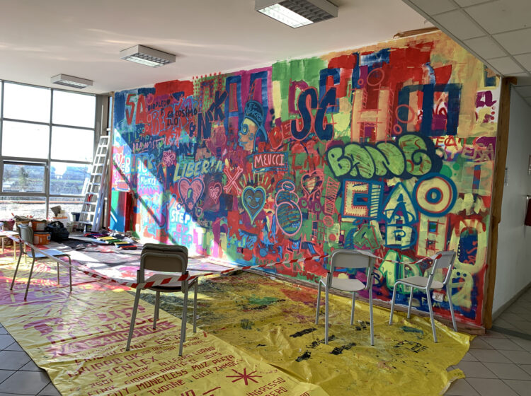 Circa 160 studenti hanno contribuito a creare un murale multicolore, riqualificando l’ambiente educativo, arricchendolo, creando relazioni inclusive e collaborazioni empatiche dove si evidenziano la ricchezza delle diversità e il valore della coesistenza.