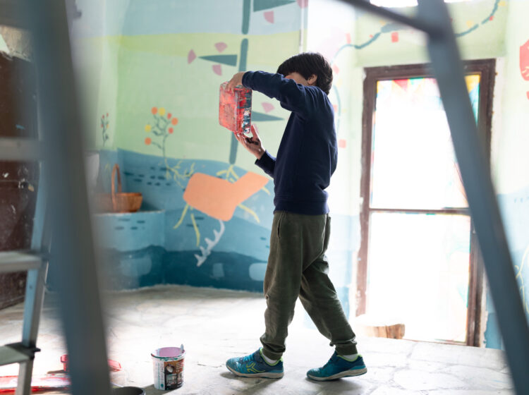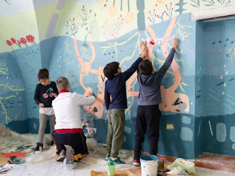 Con un approccio “relazionale” è stata trasformata la “tana” dei lupetti in un bosco murale, vibrante e inclusivo. Bambini, genitori e educatori hanno prima indossato divertenti copricapi, divenendo “alieni” che osservano la natura e le sue dinamiche. Poi, attraverso letture evocative e la creazione di stencil ispirati ai pattern naturali, hanno unito le loro diverse abilità creando un’opera collettiva.