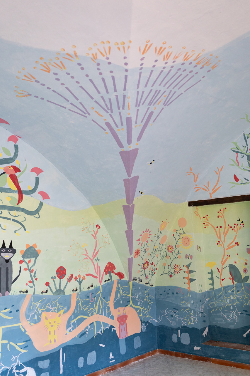 Ne è nato un mondo nuovo che dalla profondità della terra, con i suoi stralci, radici, funghi, tane di animali, piante, alberi, cielo, celebra la collaborazione tra le diversità.