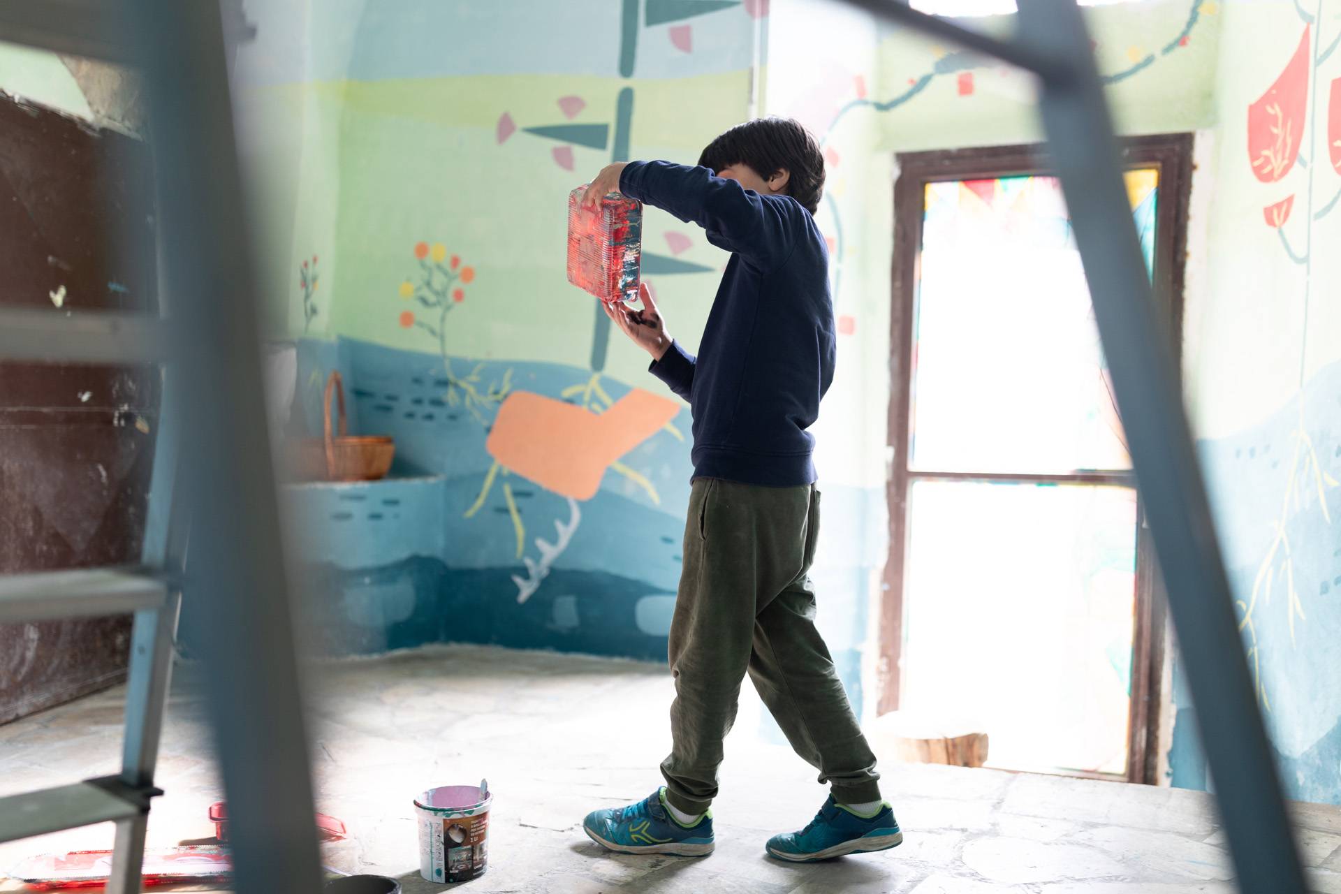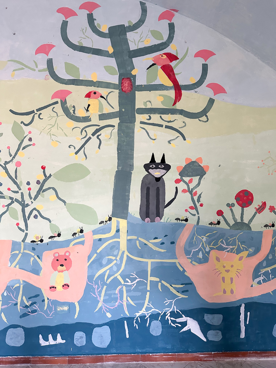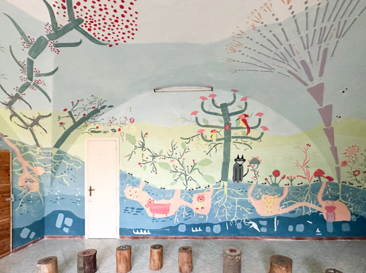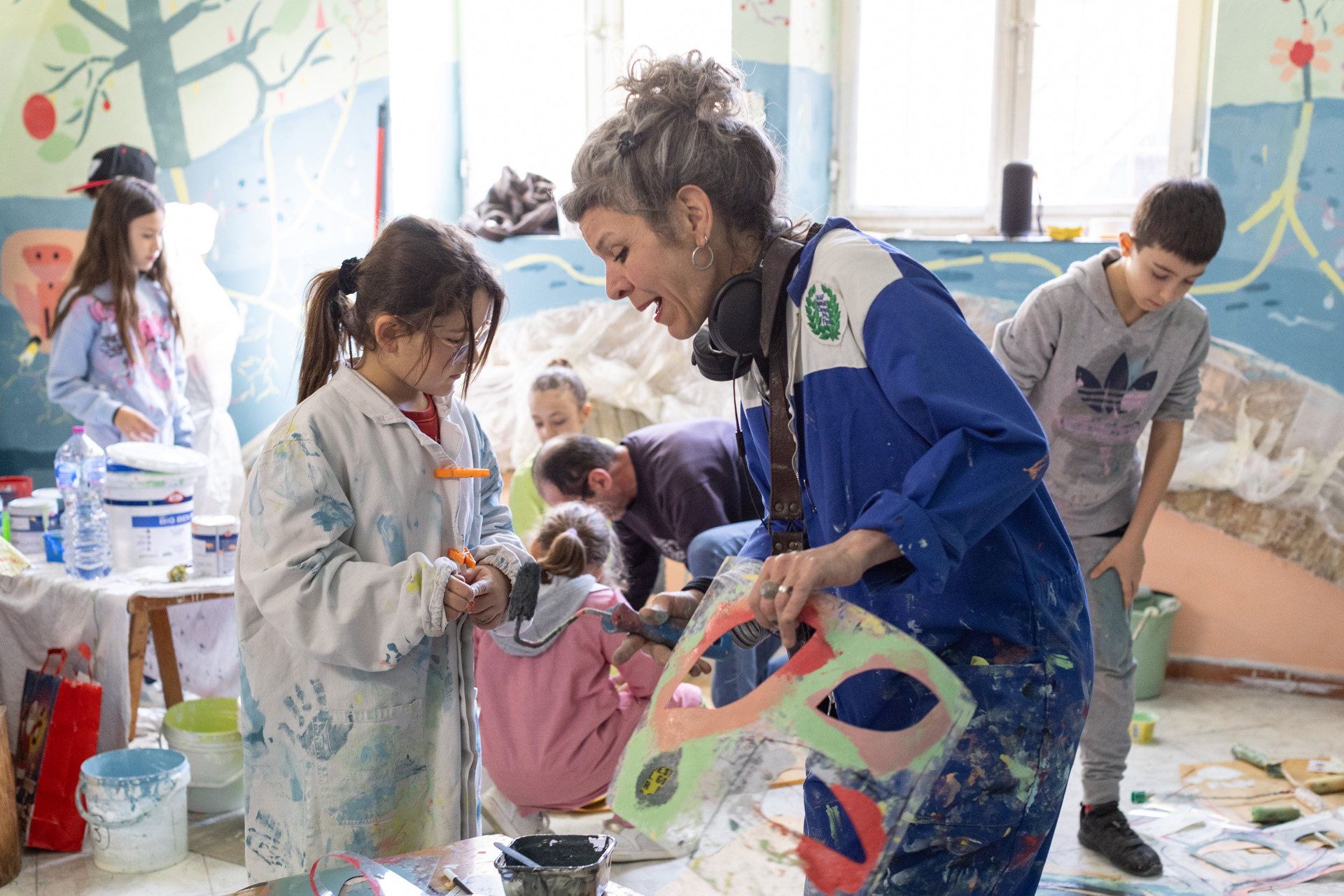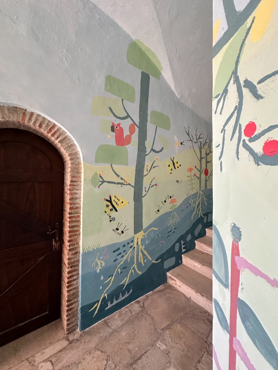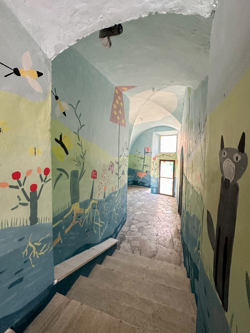 Con un approccio “relazionale” è stata trasformata la “tana” dei lupetti in un bosco murale, vibrante e inclusivo. Bambini, genitori e educatori hanno prima indossato divertenti copricapi, divenendo “alieni” che osservano la natura e le sue dinamiche. Poi, attraverso letture evocative e la creazione di stencil ispirati ai pattern naturali, hanno unito le loro diverse abilità creando un’opera collettiva.